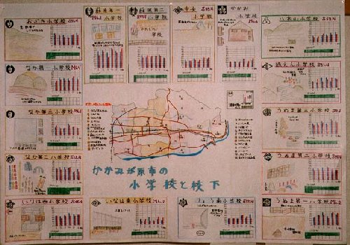 学校をひとつひとつ見てきて蘇原第二小とくらべると蘇原第一小学校は、明治にできていて、とても古い学校でした。人数も多かったです。でも、土地は、せまかったです。とても新しい学校もありました。一番新しい学校で、昭和53年にできていることがわかりました。