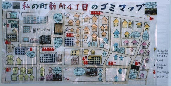 岐阜県教育長賞 「私の町 新所4丁目のゴミマップ」 (岐阜大学教育学部附属小学校 4年 服部 有希)
